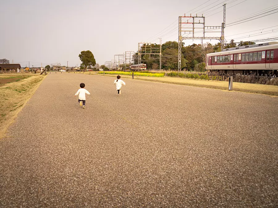 電車にかけっこを挑んでいましたが、あっけなく負けていました(笑)