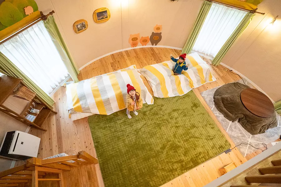大自然に包まれたファーム内で宿泊できる人気の「OKAERiビレッジ」では2022年に新キッズコテージも登場!