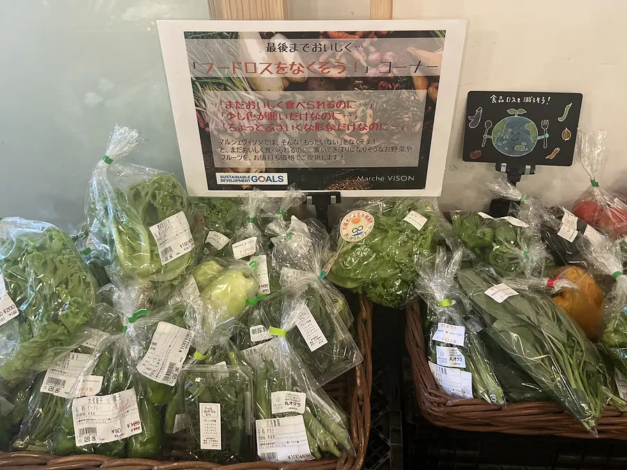 SDGsの一環で「フードロスをなくそう!」コーナーも設置されています。まだまだ美味しく食べられるお野菜や果物がお値打ちな価格になっています。食べてみたいと思っていたお野菜や高級な果物など、普段買う機会がなかったお野菜・果物がお手頃に買うことができますので、こちらも要チェックです!