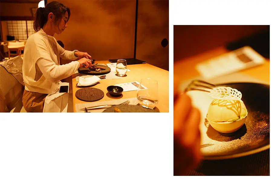 ここでの夕食は伊賀焼や信楽焼などの器に盛られた三重県の海と山の幸、そして鎌倉時代より歴史のある幻の銘牛と誉高い「伊賀牛」などの地元食材を使ったフレンチのフルコースを頂くことができます。朝食は同じく地元の食材をふんだんに使った朝の体に優しい和食です。