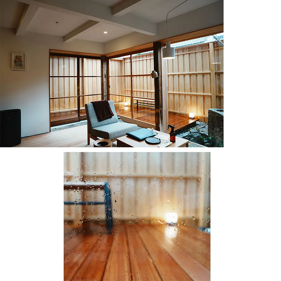 中庭から室内を撮影。1棟貸しのお部屋は静かな時間を過ごすことができます。