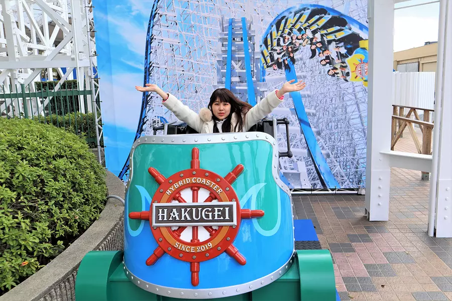 レールの長さが2,479mと世界一を誇る「スチールドラゴン2000」、日本初の大型フライングコースター「アクロバット」、4Dスピンコースター「嵐(ARASHI)」など、数多くの絶叫マシンを運転中。