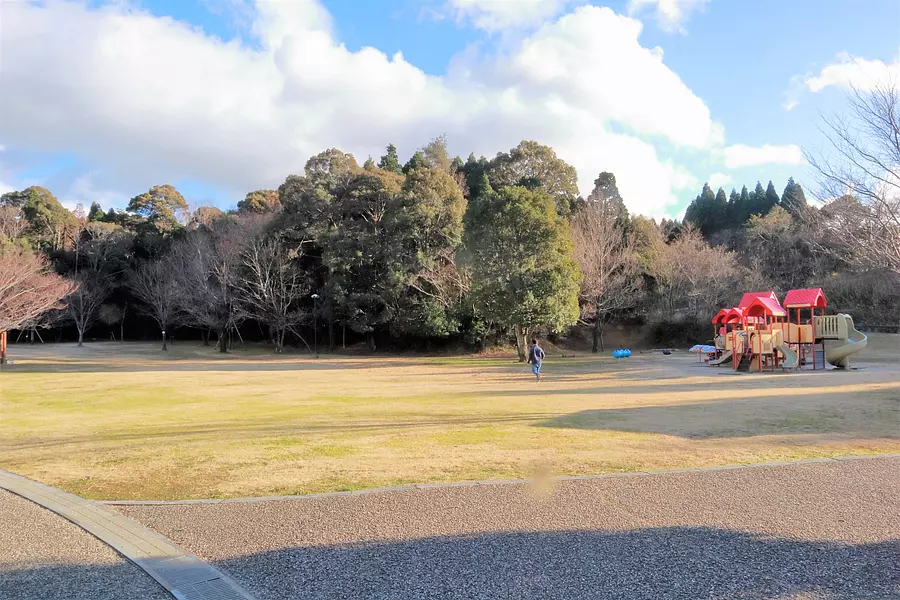 こちらは芝生広場。一般道から入れる西パーキングに隣接しており、入園しやすい立地。比較的小さなお子様でも楽しめる複合遊具があり、横には芝生も広がっていてトイレも近く、パパやママも安心して過ごせる心遣いが嬉しいですね。