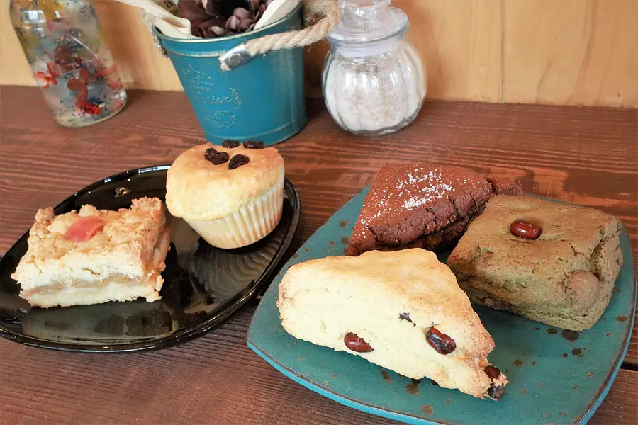 マフィン・スコーン・クッキー・ケーキ・タルトなど、8~10種ほどのお菓子が並んでいます。店主がひとりで仕込みからすべてを担当。子育ての時間も大切にしつつ、家族からのサポートも得ながら毎日数多くのお菓子を手作り・販売しています。