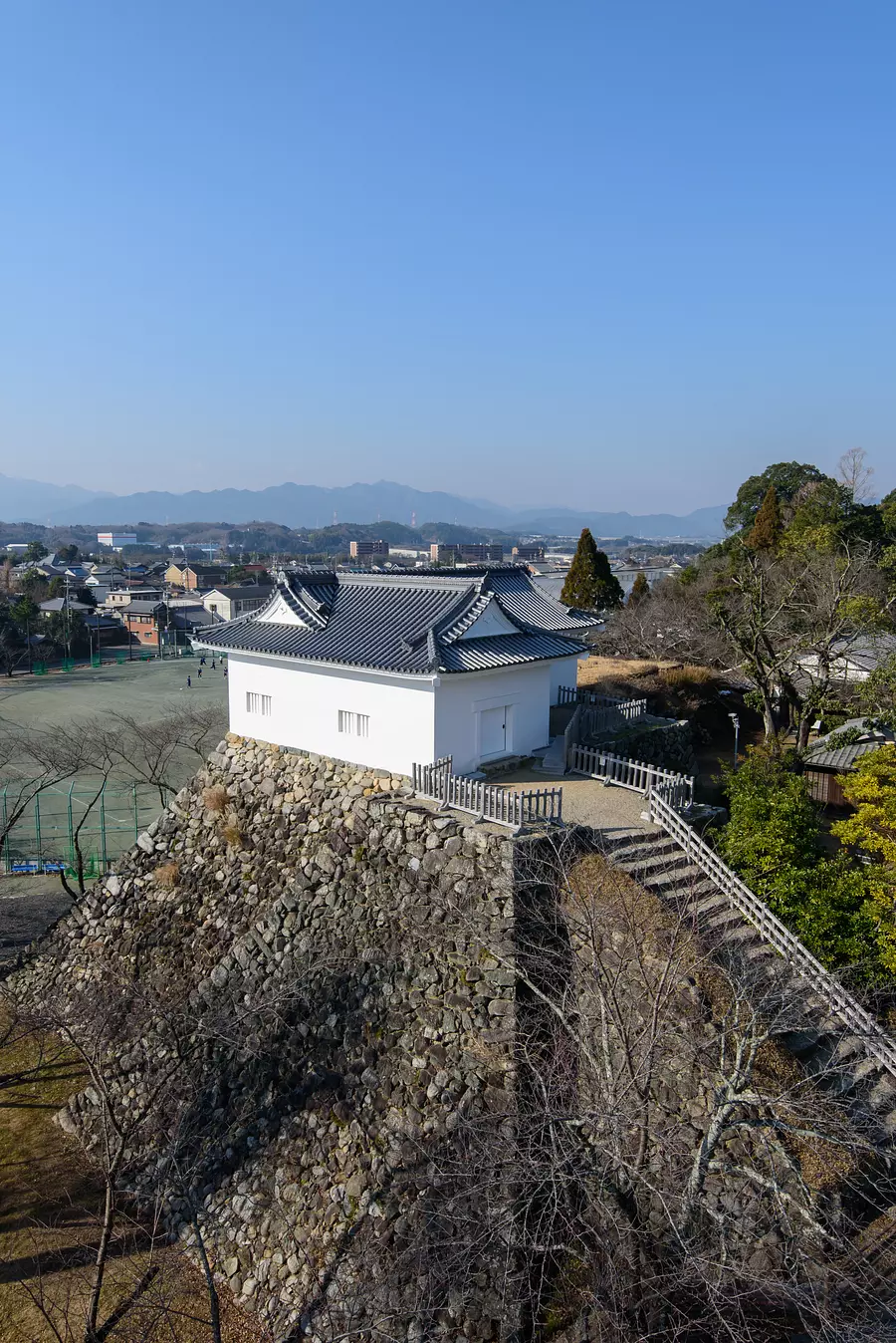 写真は亀山城跡にある多門櫓(たもんやぐら)。もともとは1590年に築城された亀山城があった場所ですが、その後解体され、1632年頃に多門櫓が建てられたとみられます。