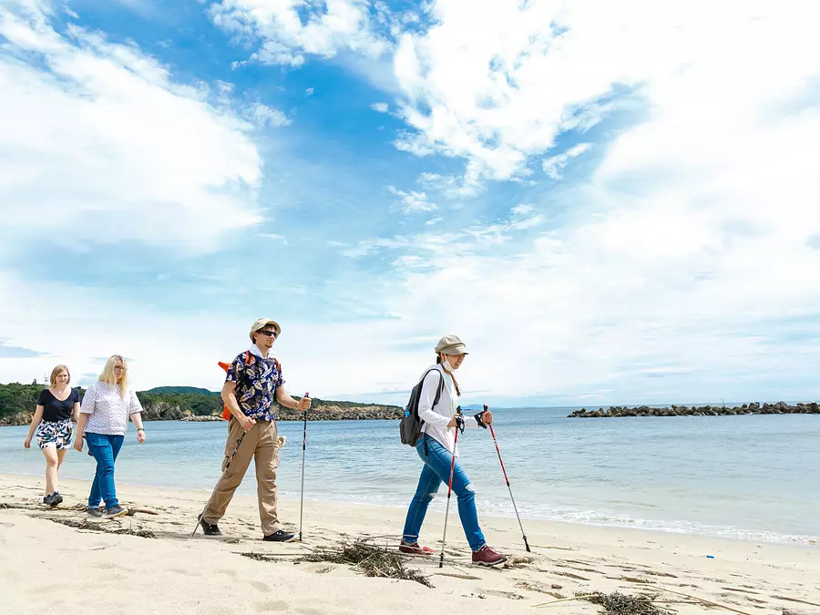 今年も相差ノルディックウォーキング開催します。ポールを使用することで全身の90%を使用するため、