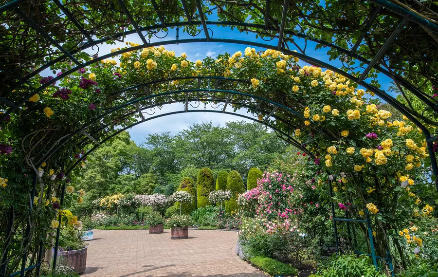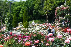 世界バラ会議というバラの世界大会で殿堂入りした品種や、皇室・王室ゆかりの品種など、約900種5000株のバラが庭園内に咲き誇ります。
