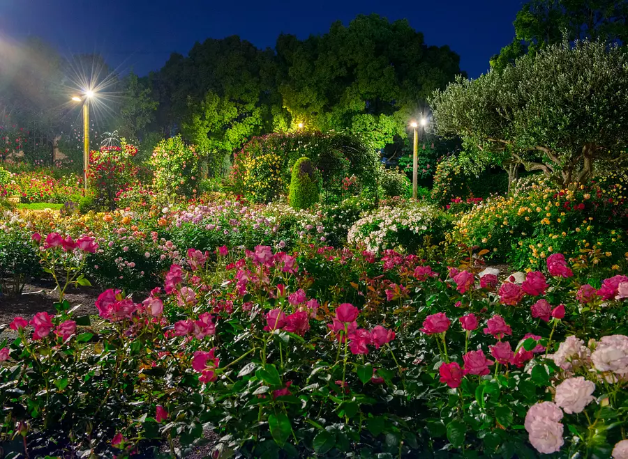 夜には、バラ園のライトアップも実施!