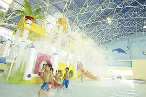 波の出るプールや1才からでも滑れるスライダー、大きなバケツから水が落ちてくるアクアデッキなど