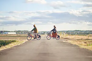 四季の花や山の風景をのんびり巡る 便利なシェア電動アシスト自転車