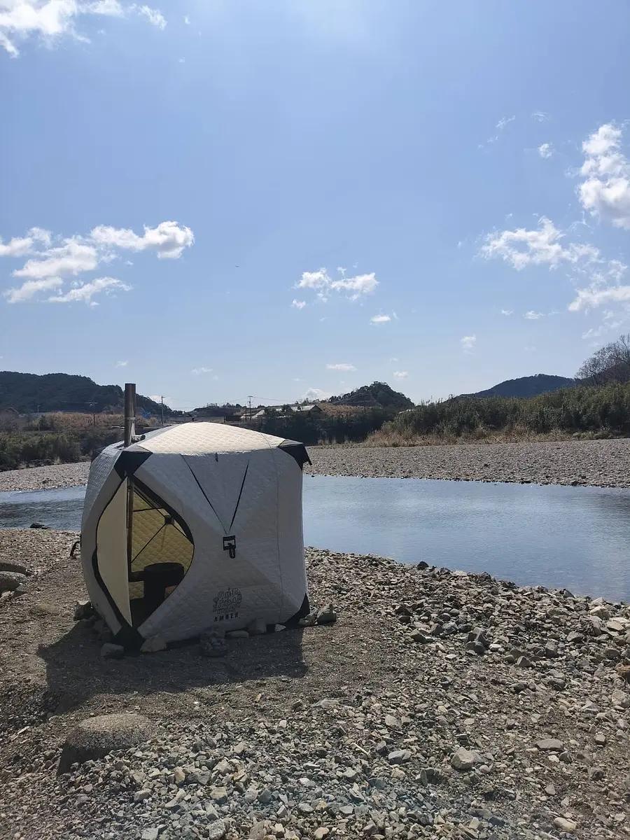 令和2年度3年度三重県水質1位(同率)の赤羽川のほとりで貸切テントサウナが体験できます面倒な設置・片付けが必要なし!