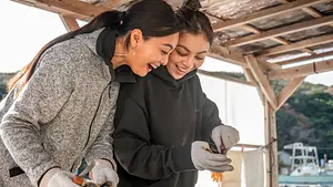 珍しい母貝への核入れ体験を通して真珠作りの難しさを体感しながら、1網分(約32個/2名分)の貝から真珠を取り出し、その中から選りすぐりの真珠を使った自分だけのアクセサリー製作をお客様自身で体験できます。(※ 取り出し体験:2名で1網(32個)、1人16個の取り出し体験)