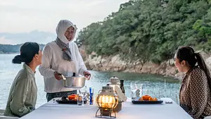 漁を終えたあとは、専用のプライベートビーチへ移動。
