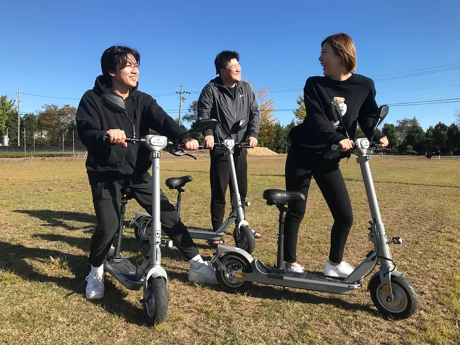 椿グリーンパーク公園西隣りの天然芝生の広場(11,500㎡)では電動キックボード場として楽しく遊べる準備ができています。広大な天然の芝生広場で快適に走行することができます。