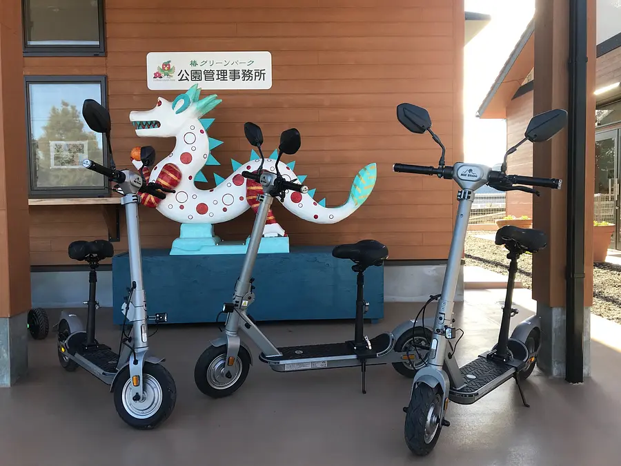 電動キックボード(一人乗り)は、公園管理事務所(受付)にて貸し出しをしています。
