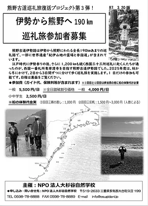 熊野古道巡礼旅復活プロジェクト第3弾! 伊勢から熊野へ190km 巡礼旅参加者募集