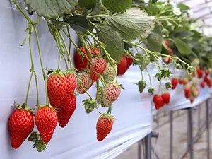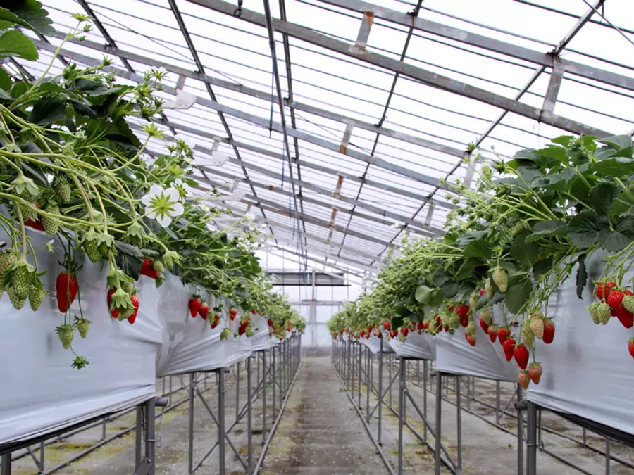 玉城I.C.から車で3分!時間無制限でいちご狩りが楽しめます!玉城ふれあい農園では、立ったまま摘むことができる空中栽培のいちごが、時間無制限で楽しめます。いちご栽培ハウスの一部は、車いすの方でも安心していちご狩りができます。