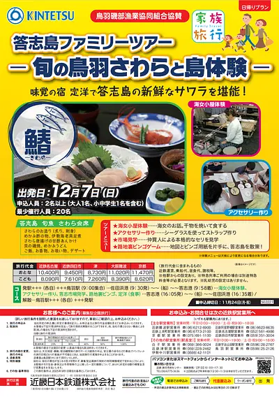 【近鉄】答志島ファミリーツアー ー旬の鳥羽さわらと島体験ー(旅行業・ツアー)