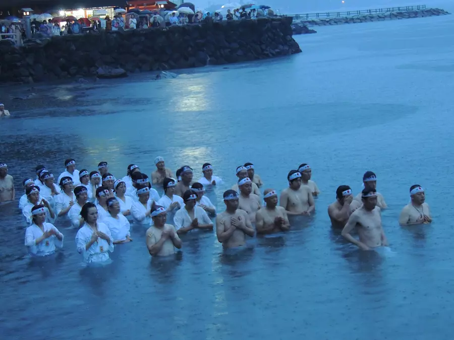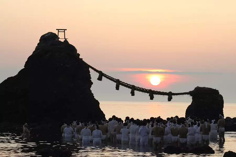 太陽のエネルギーが最も溢れる夏至の日に、夫婦岩の間から差し昇る朝日浴びながら、禊を行います。