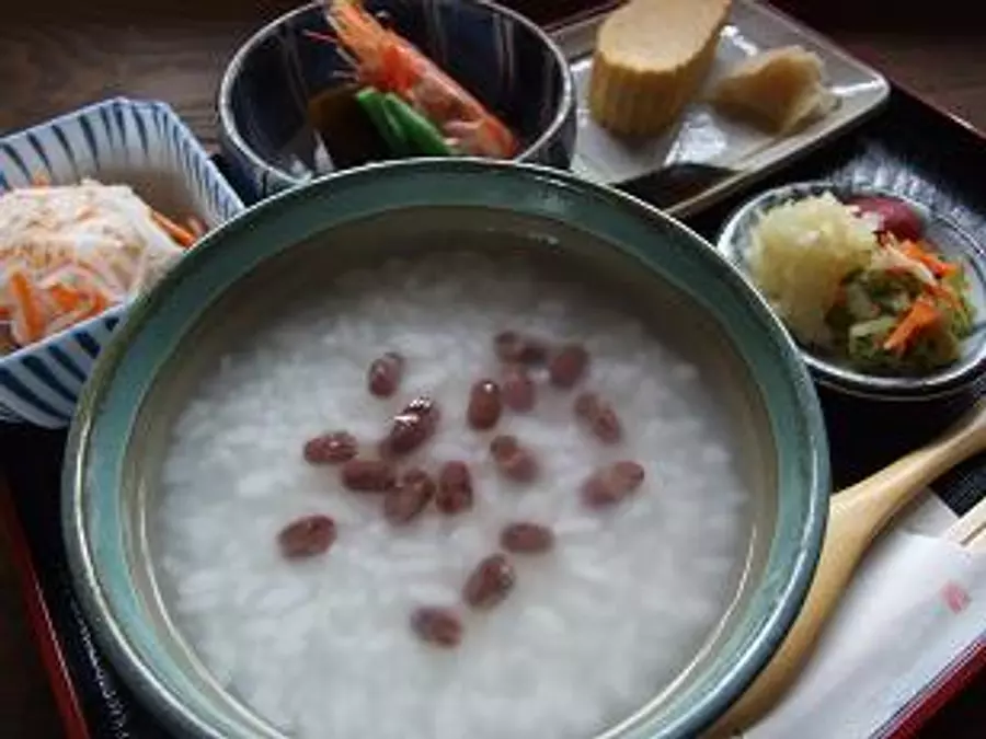 小豆の赤と粥の白さが対照的で、何ともおめでたい新年の一品です。