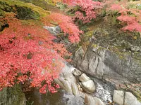 渓谷入口にあたる門前ガ淵付近は、アーチが綺麗な忍田橋の両岸のもみじが紅葉し、清流に洗われた岩石と透明な水が織りなす美しい渓谷美が見られます。