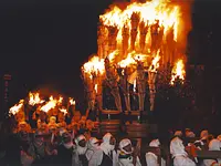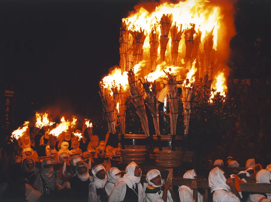 凄まじい炎を巻き上げるたいまつをたてて重さ600キロもの御輿を僧兵装束に身を包んだ男たちが担ぎ、湯の山温泉街約2キロを練り歩きます。