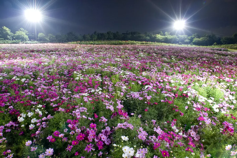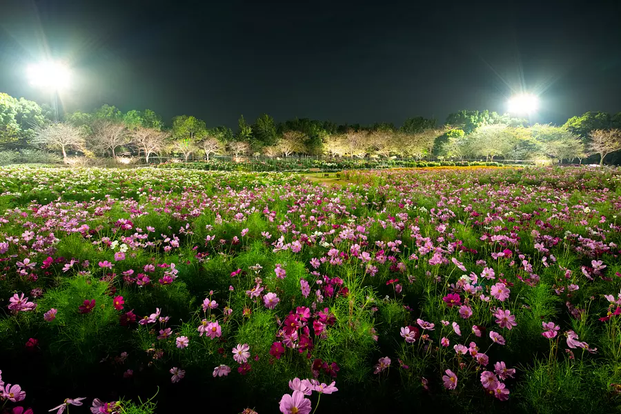 又、日没頃から閉園までは「花ひろば」は‘ライトアップ’が行われ、昼間とは異なる趣きがお楽しみ頂けます。(ライトアップ 10月中旬頃まで実施。)