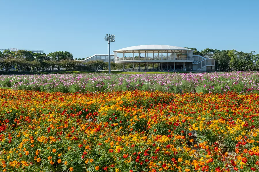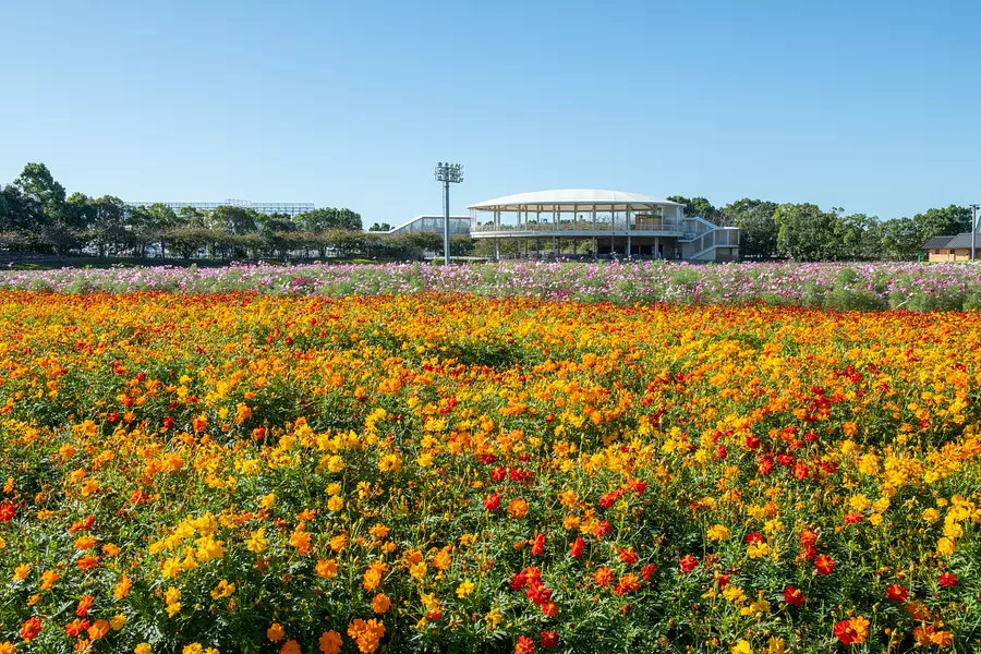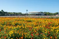 広大なお花の花壇、約43,000㎡の「花ひろば」に150万本のコスモス、顔の大きさ程ある‘超巨大輪(30~40cm)’を含む、約200種8,000株のダリアが咲く、この季節ならではのイベントです。