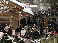 大晦日の22:30から大かがり火が点火され、元旦には歳旦祭や新春開運初神楽が、3日には元始祭が行われます。延命甘酒授与や新春恒例福みくじ(豪華福品多数)、などがあり、大勢の参拝者で賑わいます。