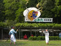 毎年5月5日に豊作豊魚を祈願して行われる神事で、桃山時代の風俗衣装を身に着けた男女が苗を植えていきます。その後、団扇角力(うちわずもう)等が行われます。