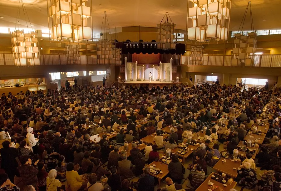 日本中の人々から愛される名曲の数々…。日本歌謡史に燦然と輝く懐かしい名曲や、これからも歌い継ぎたい時代を彩った心に残るすばらしい歌をご紹介いたします。「長島温泉 湯あみの島 」歌謡ショウといえば長島温泉というほどその歴史は長く今もその伝統は受け継がれています。大自然を満喫できる日本最大級の露天風呂が魅力の「湯あみの島」3F大広間で毎日、豪華歌謡ショーのステージをお楽しみいただけます。
