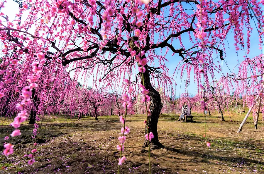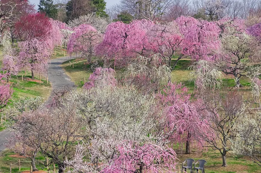 Kazahaya-no-Sato – “Kappa’s Hometown” is Japan’s first horticultural welfare garden, introduced on the Japan National Tourism Organization (JNTO) official “Japan Travel” website. During the 2026 “Flower & Prayer Plum Blossom Festival,” 66 varieties and 585 plum trees burst into bloom, filling the hillside with soft colors and a gentle fragrance. The over 100-year-old “Yoro Plum,” standing about 6 meters tall, creates a powerful presence, while the “Plum Shower” of cascading blossoms and picnics under weeping plum trees offer truly unique spring experiences.