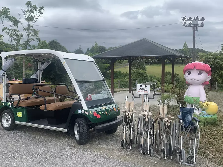 ②駐車場↔園内ゴルフカート4人乗りピストン運行(9時~17時)雨天中止