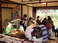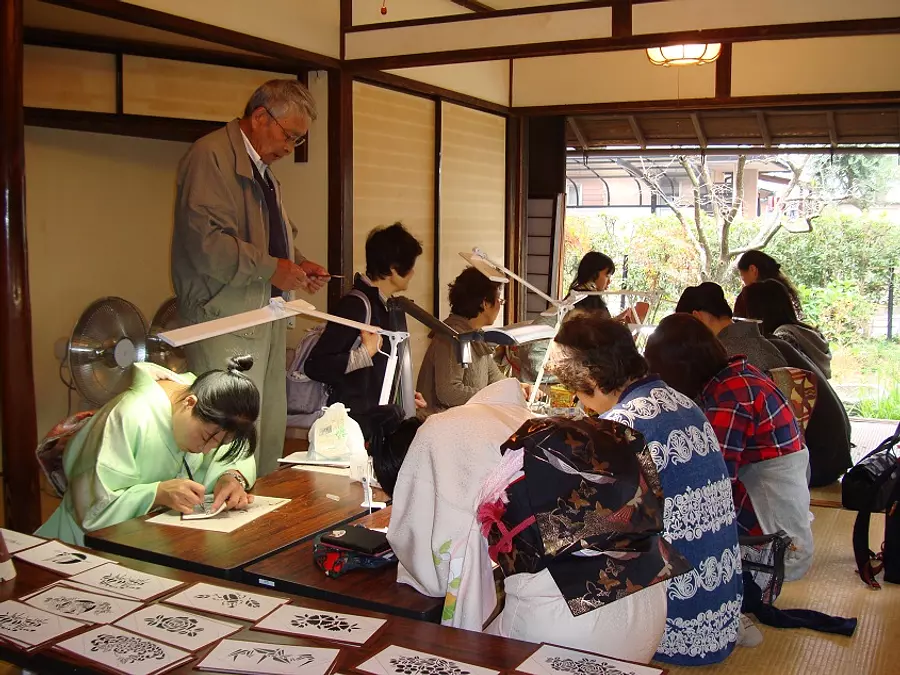 伊勢型紙の道具彫りの体験や、写仏・写経体験、伊勢型紙ノート作り体験、キモノdeおさんぽなど、各所で体験をご用意しています。(金額、受付については伊勢形紙共同組合のサイトをご覧ください)