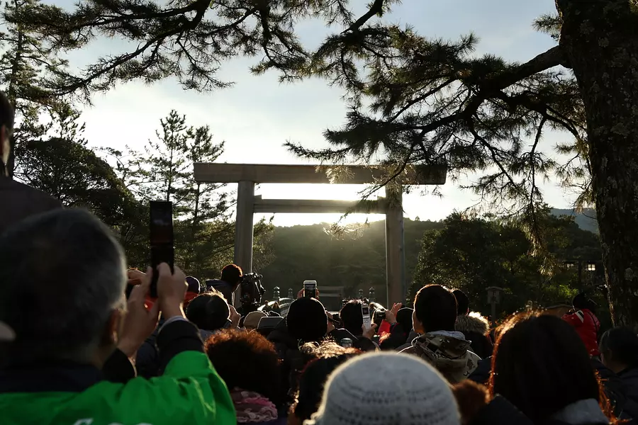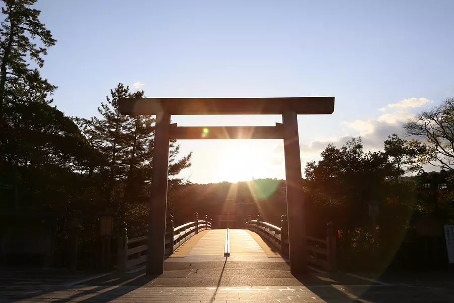 冬至を中心として前後1か月、内宮宇治橋の大鳥居からは美しい日の出を望むことができます。