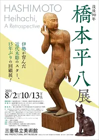 橋本平八(はしもと へいはち、1897~1935)は、現在の伊勢市出身の彫刻家です。伊勢で彫刻の手ほどきを受けた後、上京して佐藤朝山(さとう ちょうざん)に木彫を学びました。25歳にして《猫》が日本美術院展に初入選を果たすと、その高い技術と才能によりたちまち注目を集めます。29歳で帰郷した後も、《石に就(つい)て》などの意欲作を次々に発表しました。その活躍は「木を持たしては橋本君」と評されるほどでしたが、惜しくも1935(昭和10)年に亡くなり、38年の生涯を閉じました。