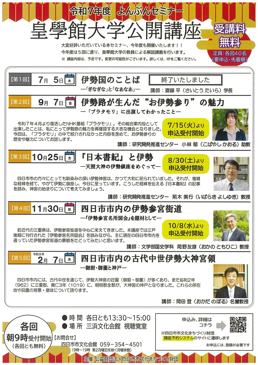 令和7年度 よんぶんセミナー 皇學館大学公開講座 レイワ7ネンド ヨンブンセミナー コウガッカンダイガクコウカイコウザ