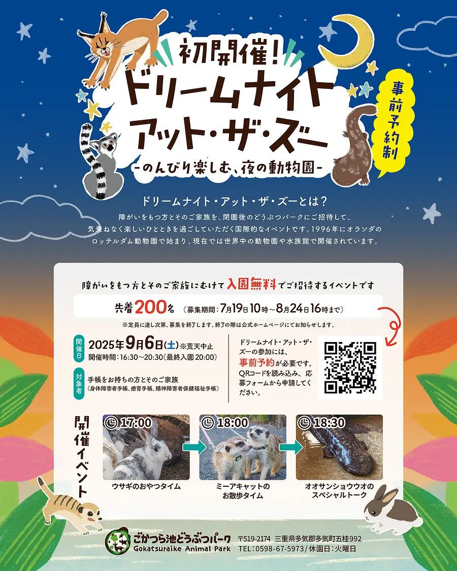 ごかつら池どうぶつパークでは初となる、【ドリームナイト・アット・ザ・ズー】開催のお知らせ
