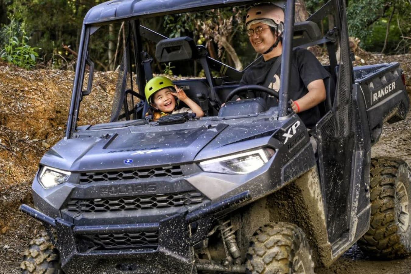 ■VISONの森の池で足漕ぎカヤック ![]() 子どもと一緒に、ペットと一緒に! | ■森の中を駆け抜けるバギー体験 ![]() 小学5年生から運転できる! | ||||