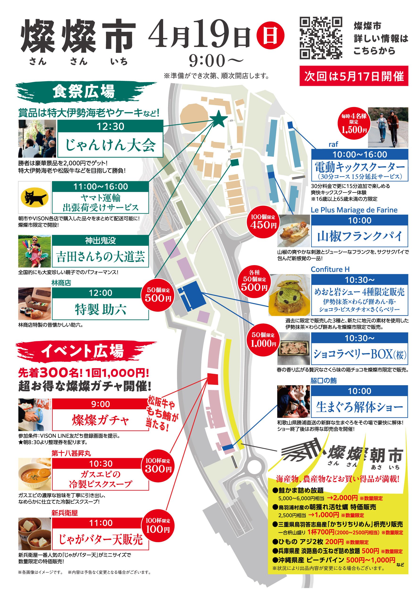さあ 毎⽉三回⽬の⽇曜の朝は VISONの燦燦市へ