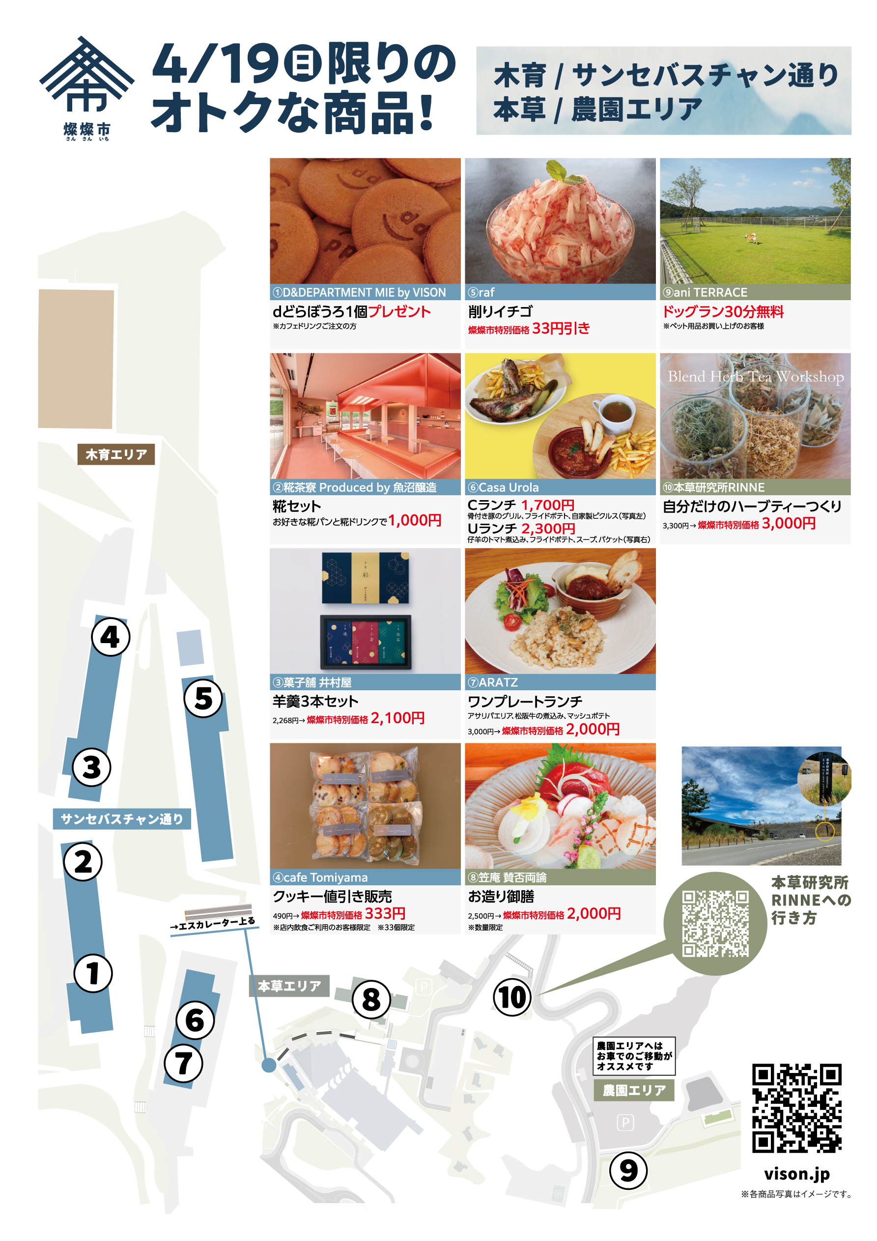 VISONの各店舗でもさんさんに関連した、この日限りの特別な商品やサービスをご提供!