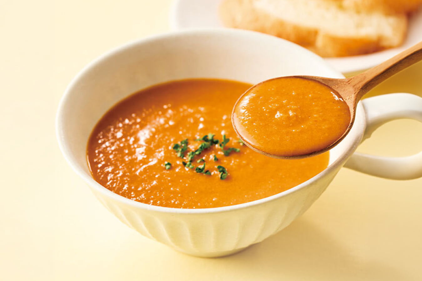 ガスエビの濃厚な旨味を丁寧に引き出し、なめらかに仕立てた冷製ビスクスープ!