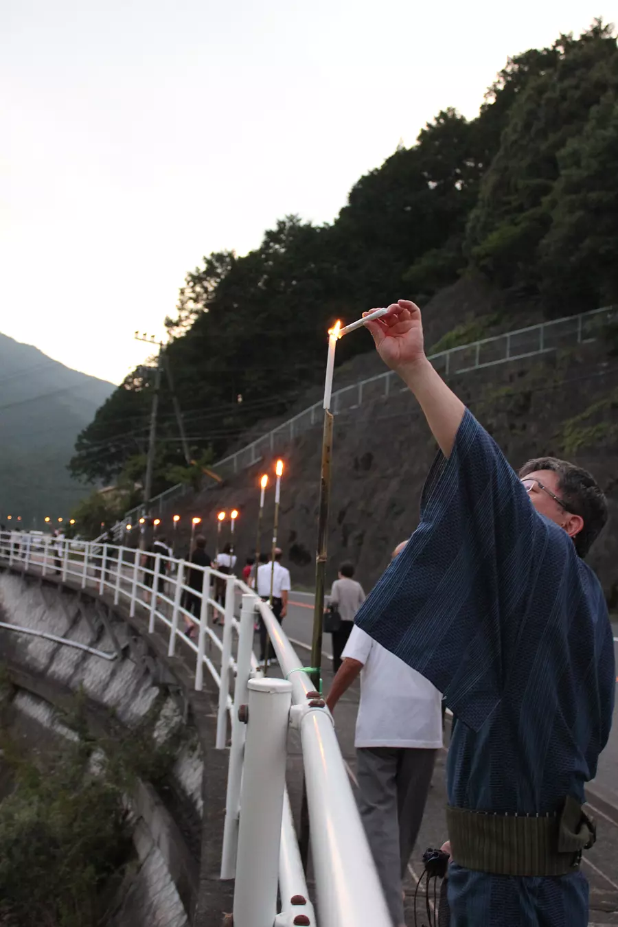 初精霊の家から墓地まで青竹108本に蝋燭をたてます。これは、初精霊を自家に送り迎えする道しるべであり、108の煩悩を焼き払う灯火の意味があります。