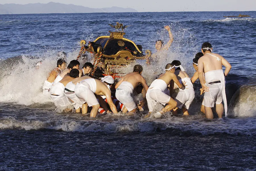 船山車・神輿・鵜殿ばやし総踊り等が鵜殿地区内を練り歩き、ハリハリ踊りや熊野水軍太鼓演奏、餅ほりなど催し物がたくさんです。最大の見せ場である禊ぎも必見!(22日宵宮、23日例大祭)