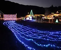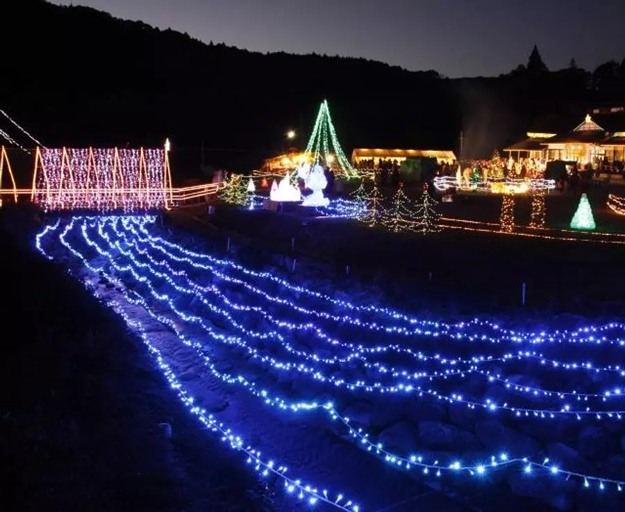 約20万球の輝きが山間の暗闇を彩り、幻想的な風景画が広がる冬の風物詩。今年も20mの巨大ツリーや光のトンネルが、みなさまをお出迎え。