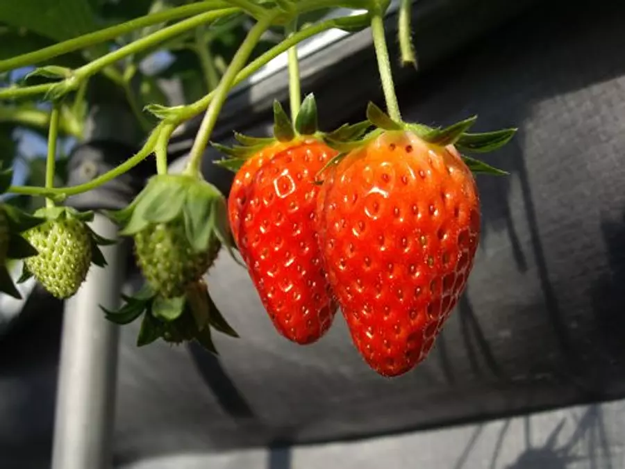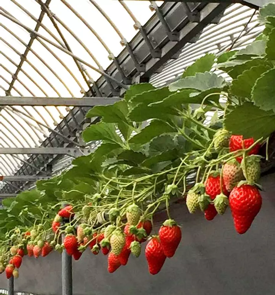 ハウスは土を使わない高設二段式ロックウール栽培ですのでお子様からお年寄りまで靴も汚れず立ったままイチゴ狩りを楽しめます。