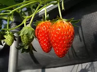 イチゴは、酸味の少なく大粒になる「章姫(あきひめ)」です。