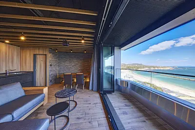 海辺の高台に建つ宿の高層階にできた絶景と波音を楽しむスイートにお得に泊まる♪