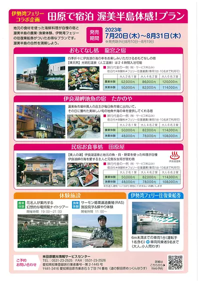 伊勢湾フェリーで行く田原で宿泊渥美半島体感!プラン