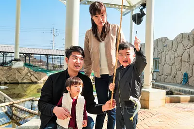全国でも珍しい磯の体験施設「海ほおずき」で、魚釣りや干物作りをファミリーで満喫!